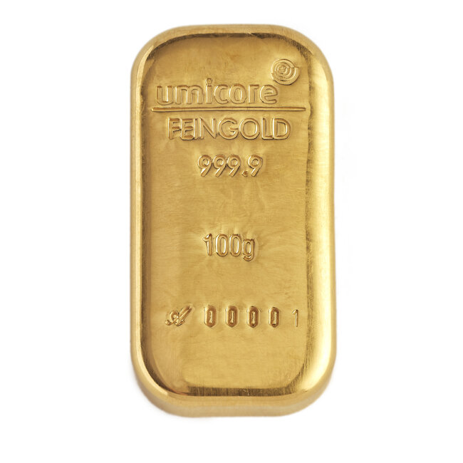 De 100 gram goudbaar van Umicore is een uitstekende investering voor wie grotere hoeveelheden fysiek goud wil opslaan. Dankzij de blisterverpakking met certificaat is deze baar wereldwijd verhandelbaar en volledig herkenbaar als beleggingsgoud.