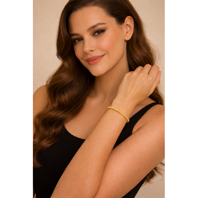De 22 karaat Mevlana Burma armband is een tijdloos en waardevol sieraad, bekend om zijn gedraaide design en stevige uitstraling. Dit model is populair als combinatie van luxe draagbaar sieraad en investering in goud.